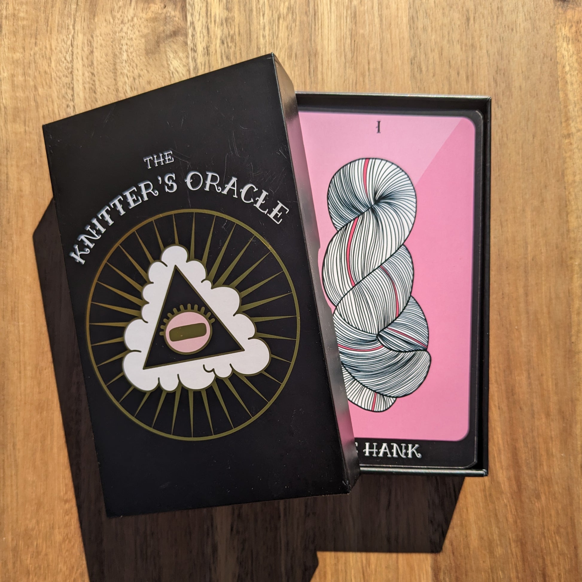 The Knitter's Oracle Deck by Wild hunt designs comprises of 36 holographic edge cards complete with a instruction booklet/card guide!