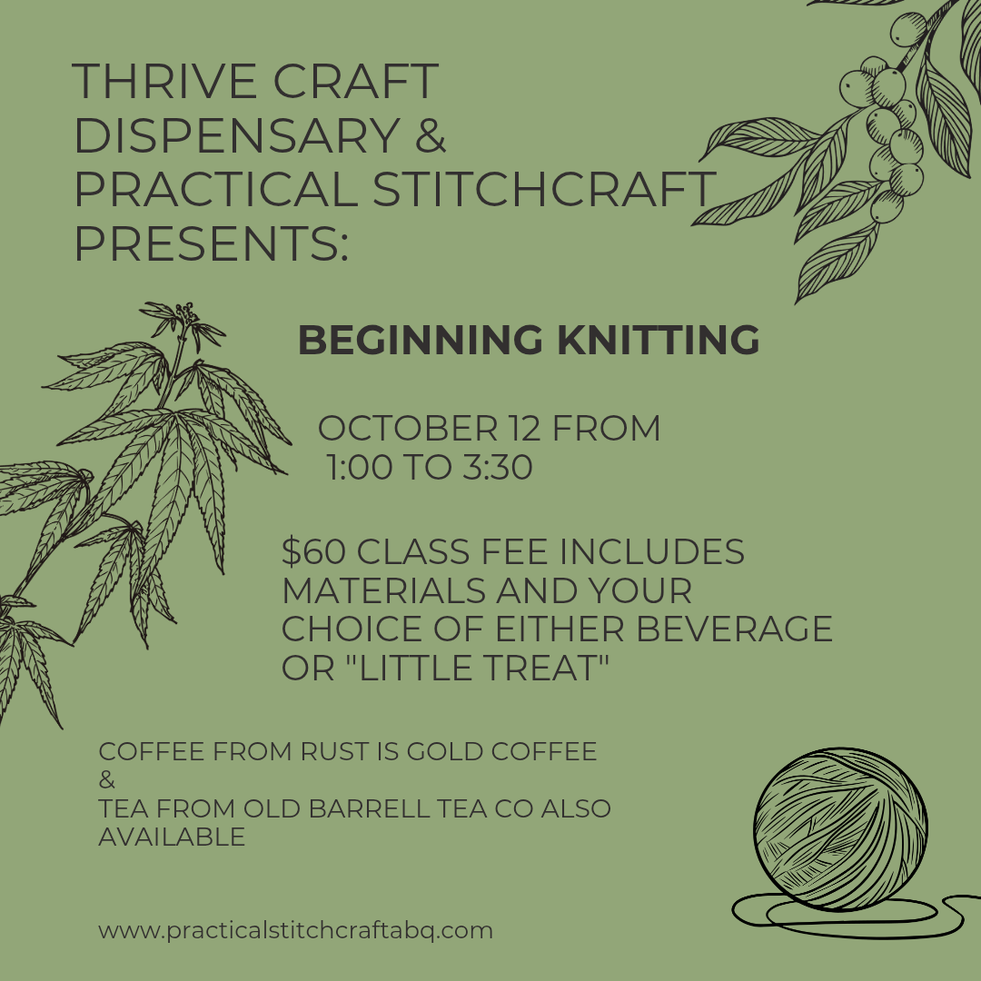 Beginning Knitting 1 at Thrive Craft Co. Dispensary and Lounge (2.5 hours)