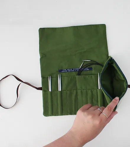 This handy case is the perfect way to store all your knitting needles (fixed or interchangeable), your crochet hooks or colored pencils. The outside features a unique illustration made by The Blue Rabbit House. The illustration is printed on 100% organic cotton. The inside is finished off with 100% cotton.