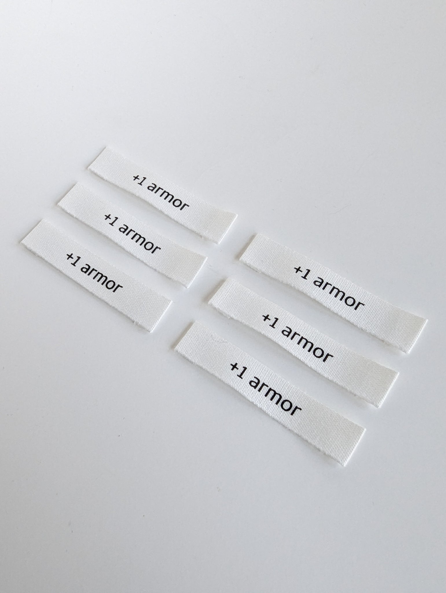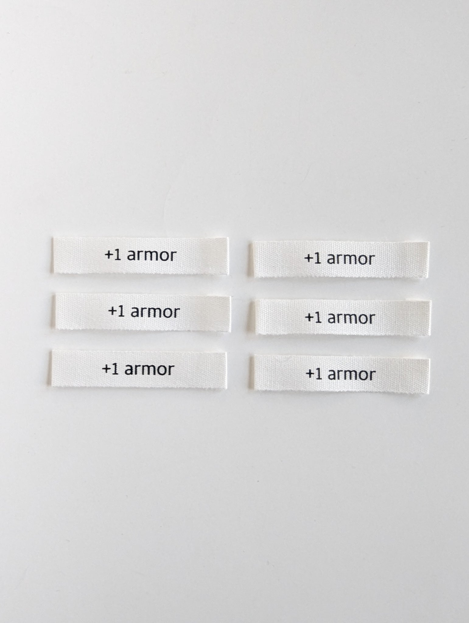 Intensely Distracted's beautiful cotton labels get you ready for your day with +1 armor!