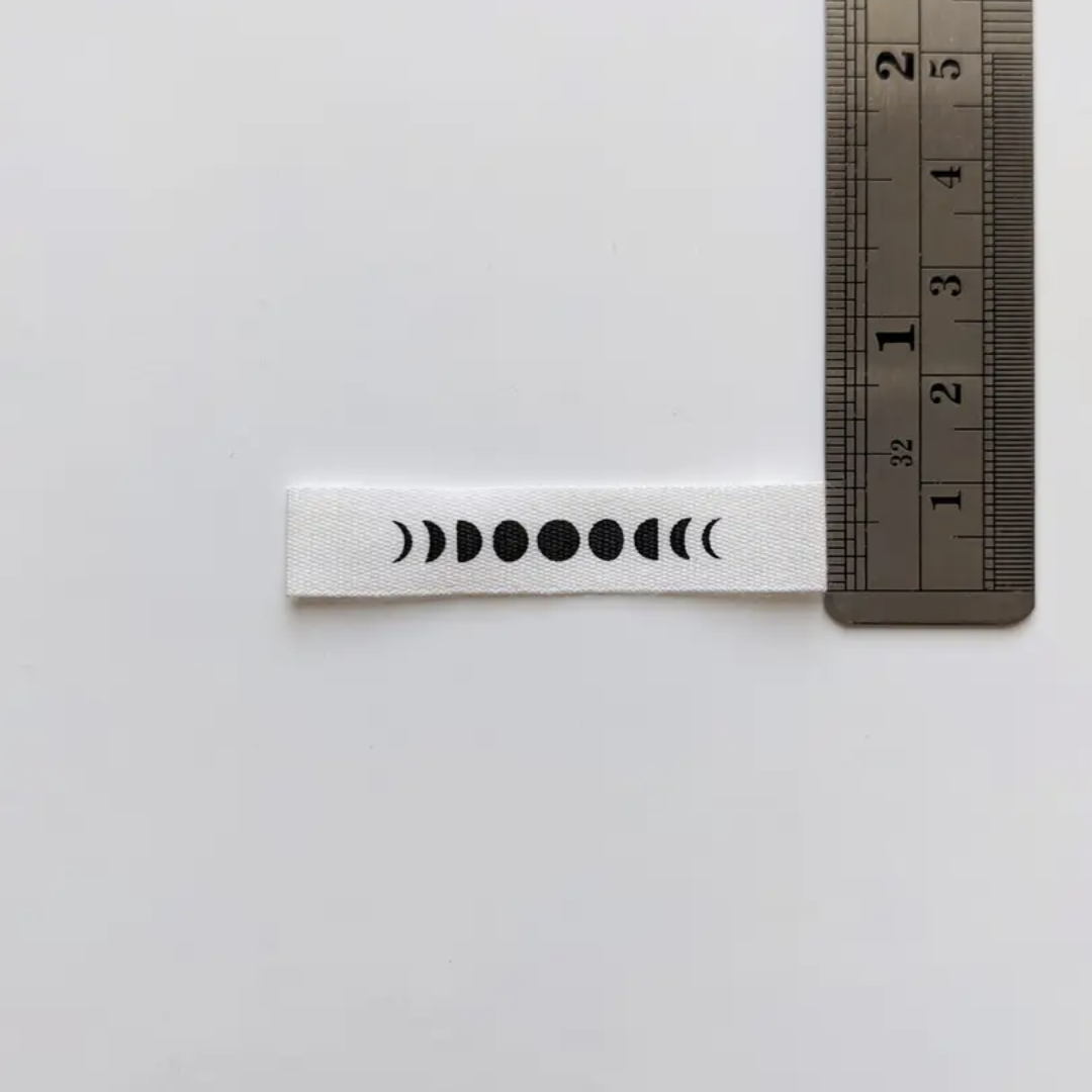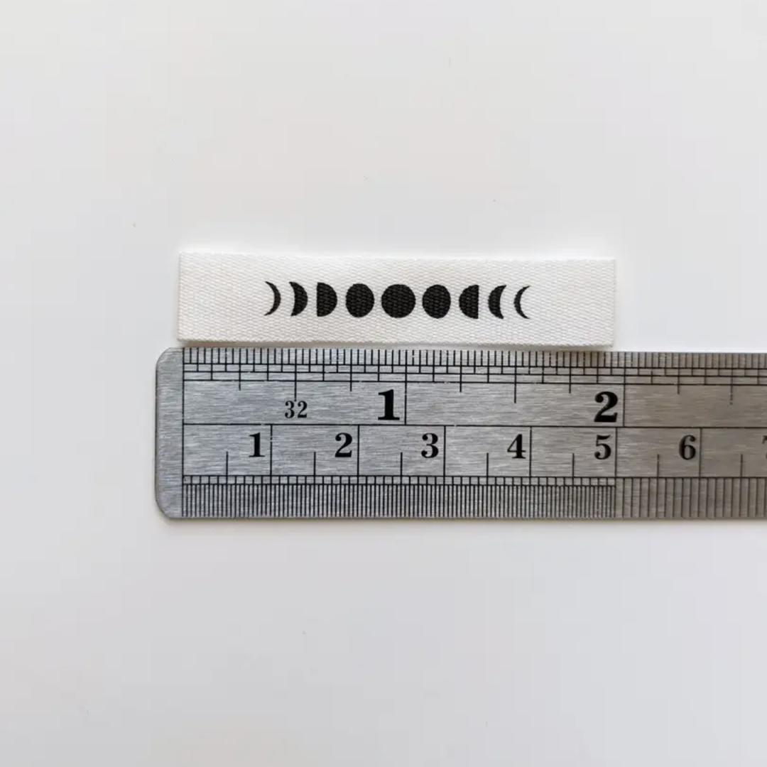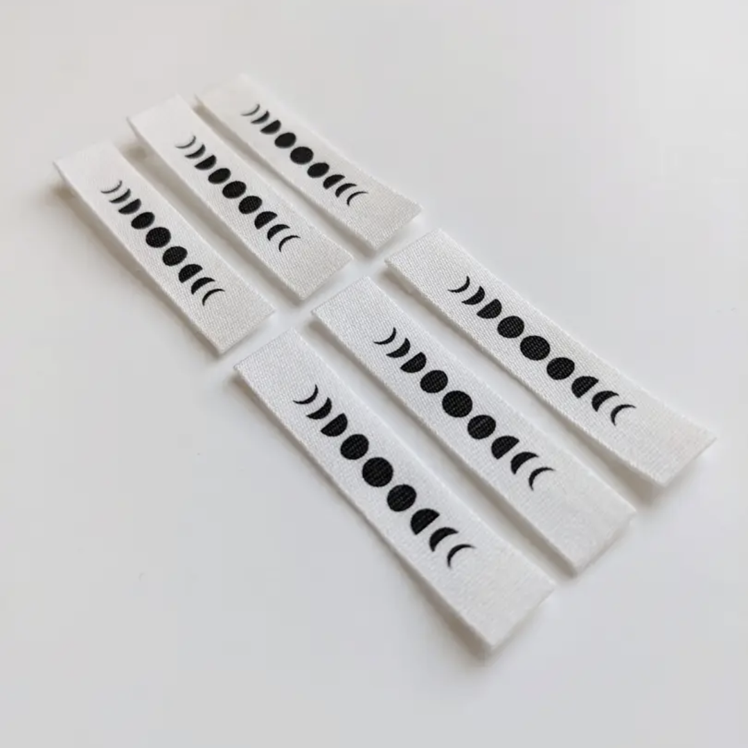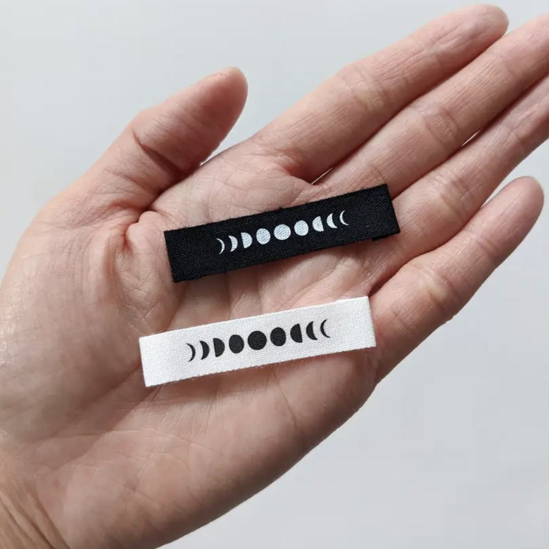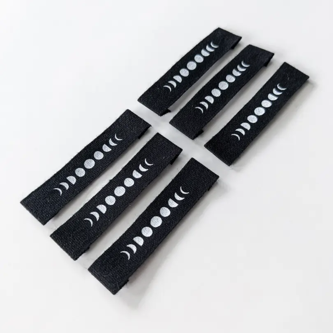 Intensely Distracted's beautiful cotton labels come in black with white moon phases or white with black moon phases.