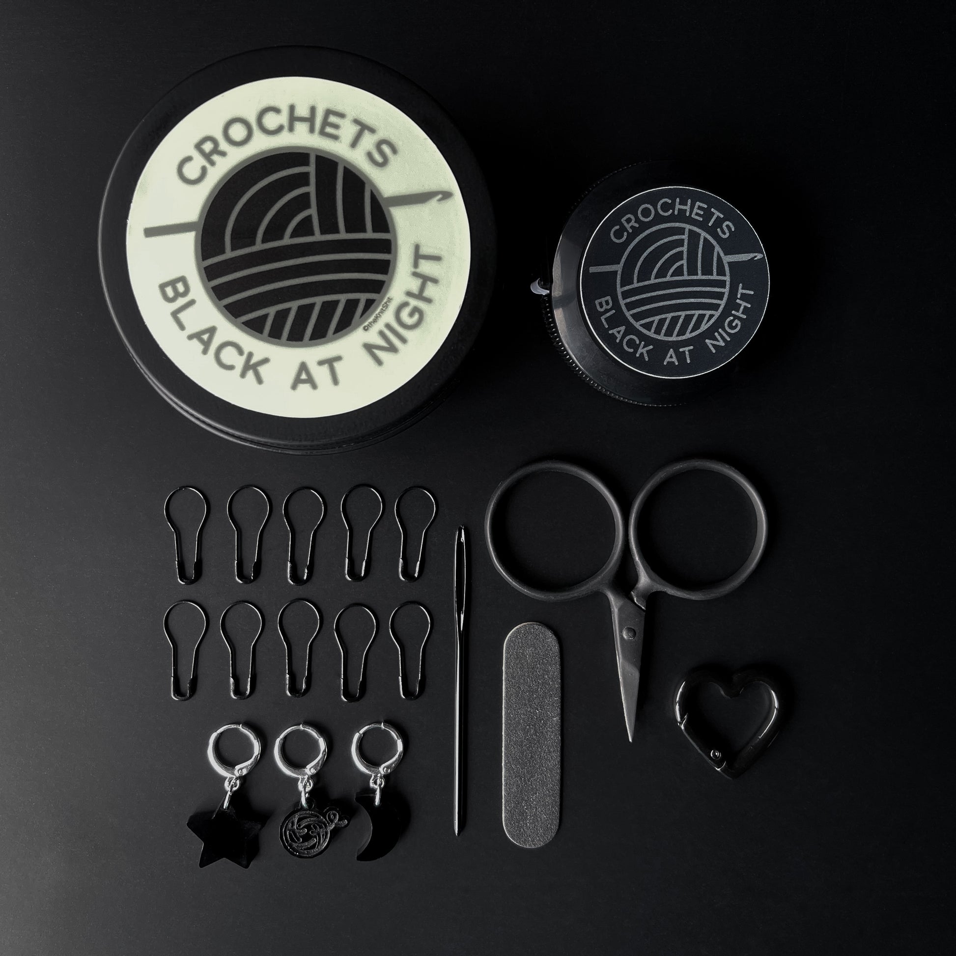 The Knit Shit's Crochets Black at Night Notions Kits contains: