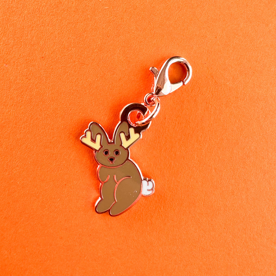 Jackalope is enamel on rose gold and measures 0.53" wide and 0.75" tall.