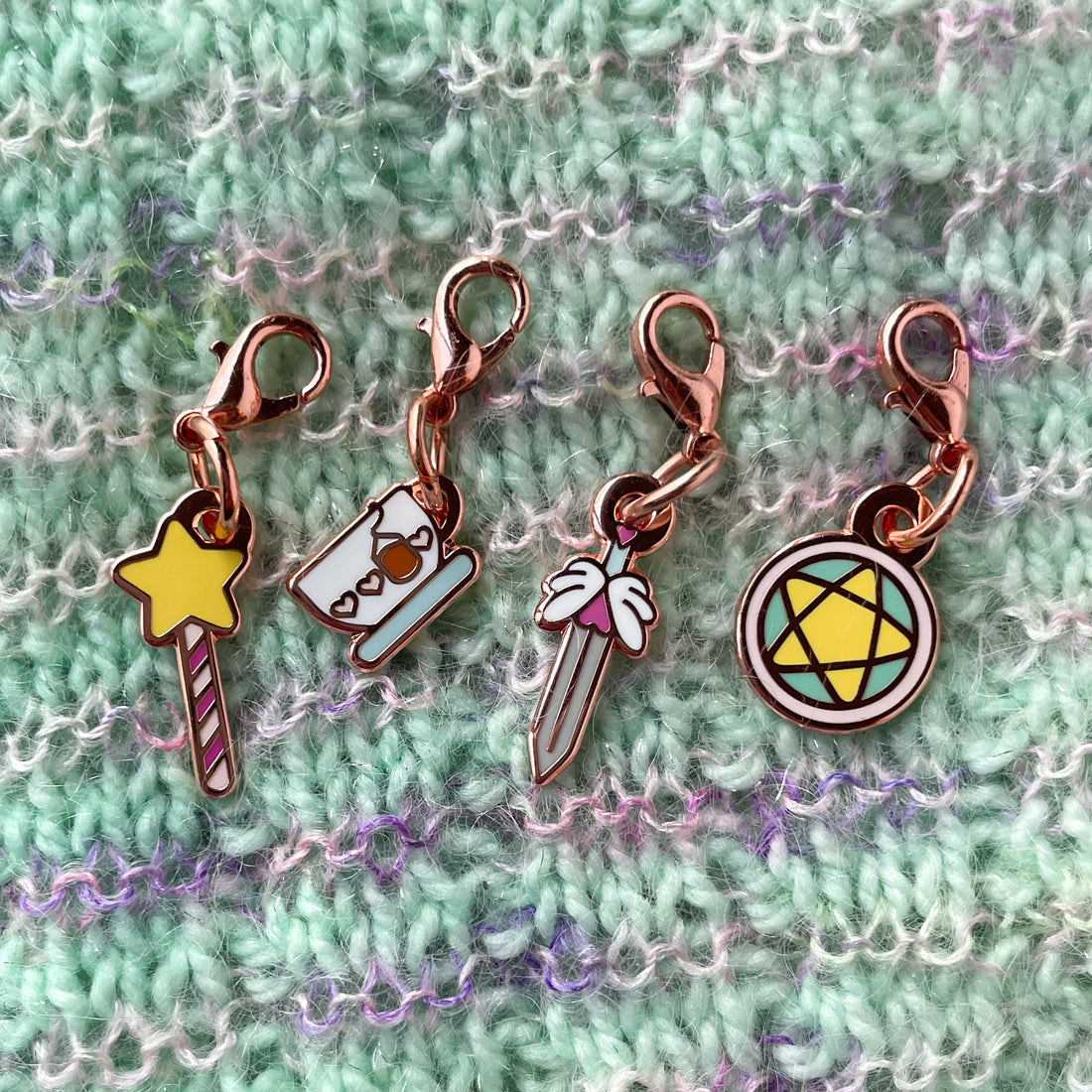 Kitty With A Cupcake's Kawaii Tarot Charms include the sword, the pentacle, the wand, and the cup. Bless your project, shoes, or bag with these adorable tarot symbols.