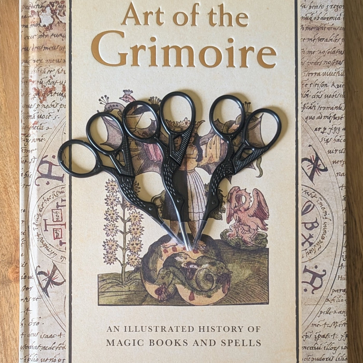 Practical Stitchcraft's matte black crane scissors are sharp steel blades topped with an anodized crane.