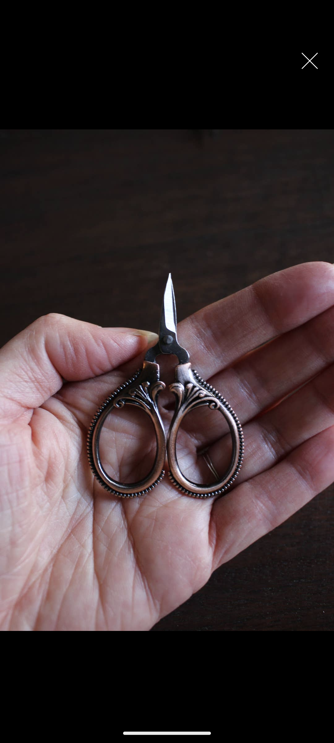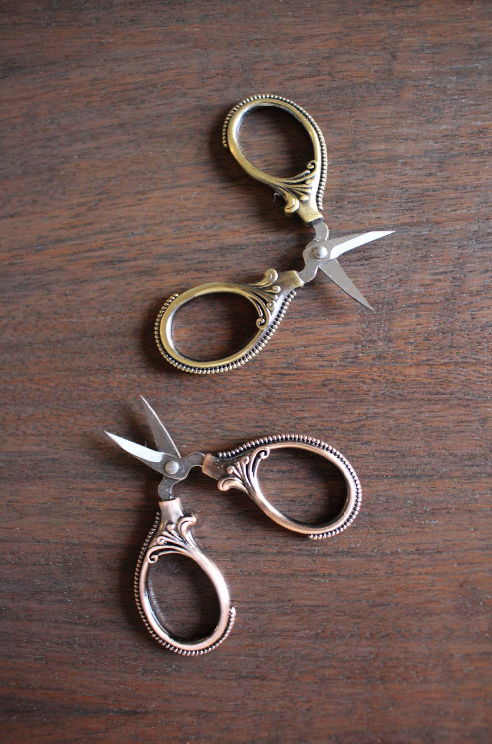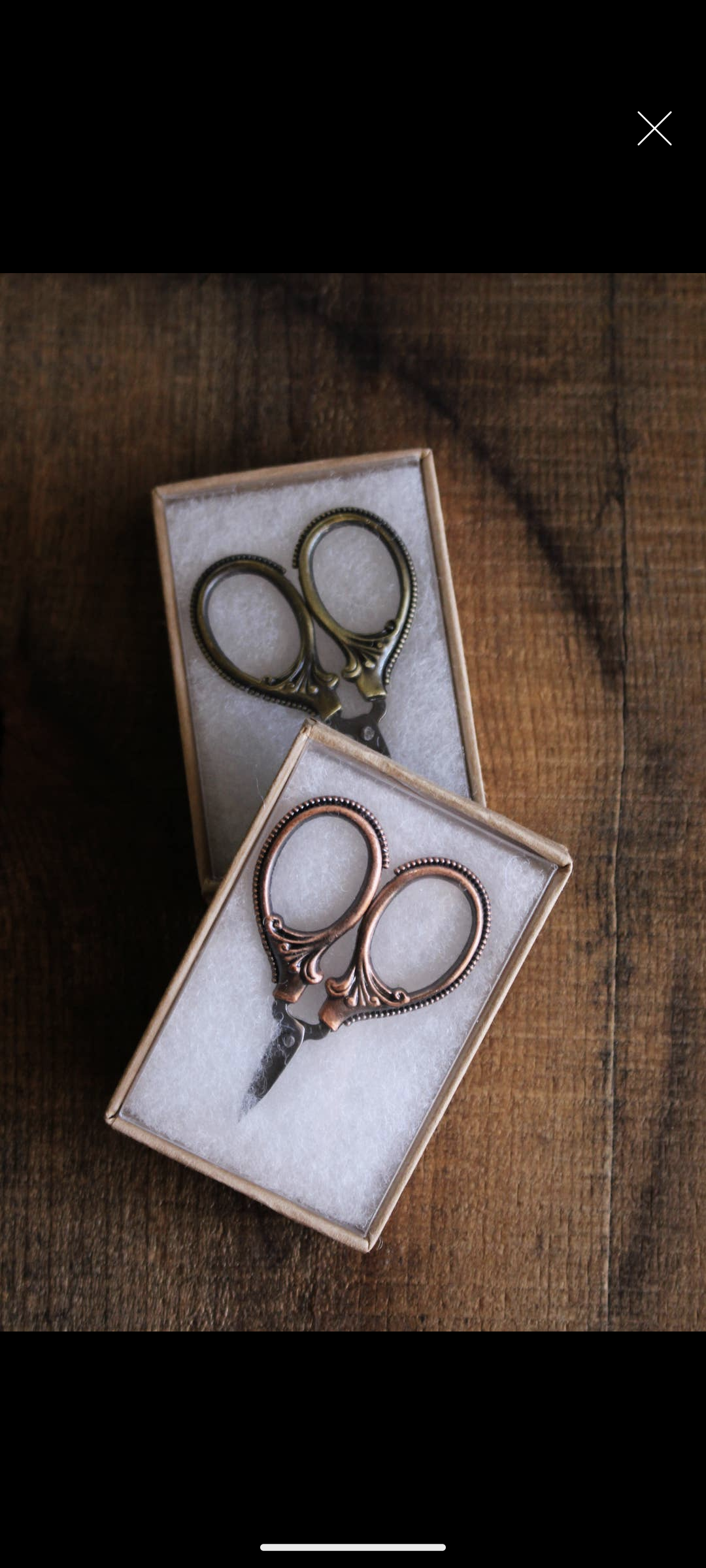 The scissors come in either an antique copper or antique brass finish. They will be delivered to you in a craft paper box with a clear plastic lid.