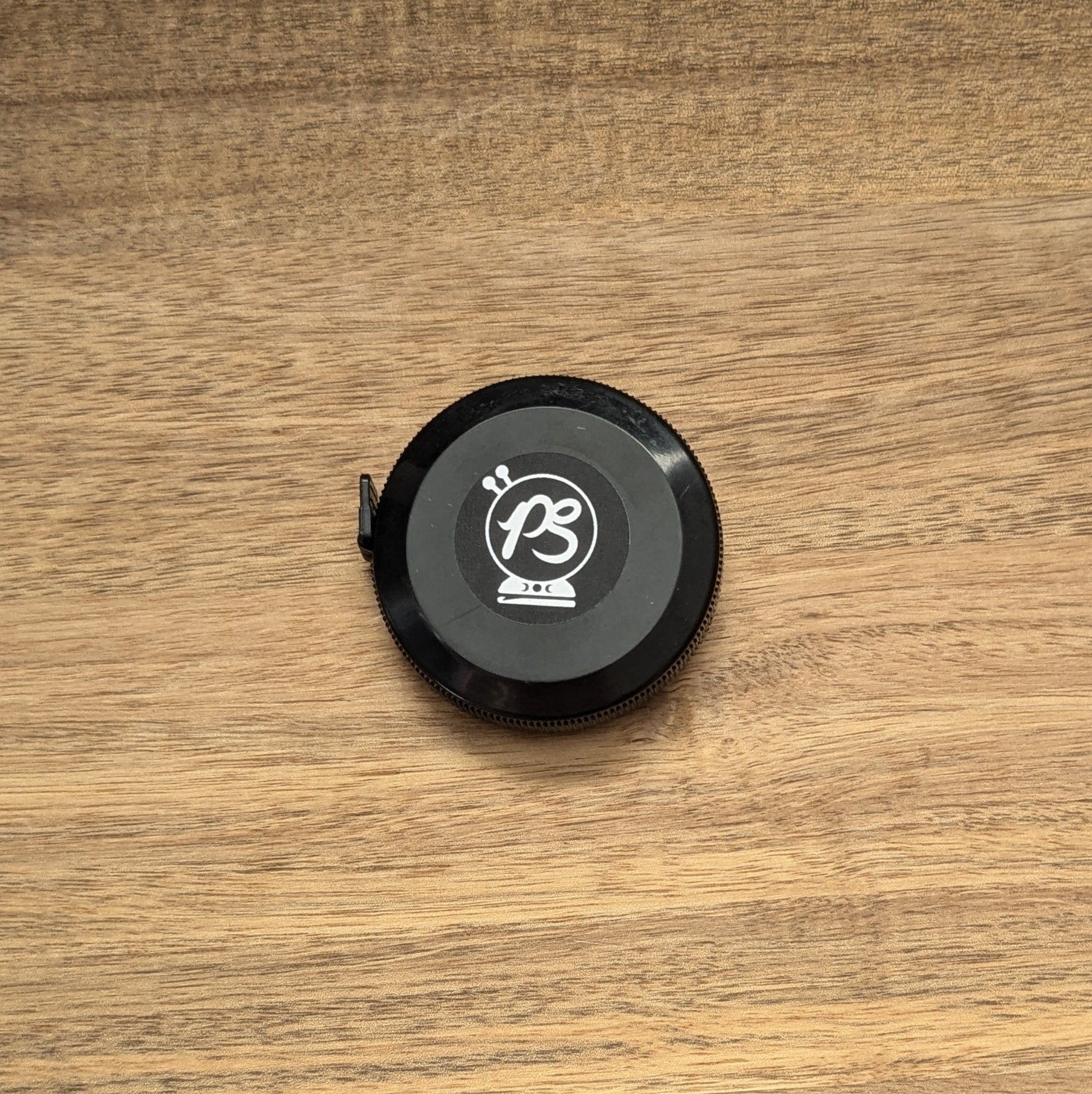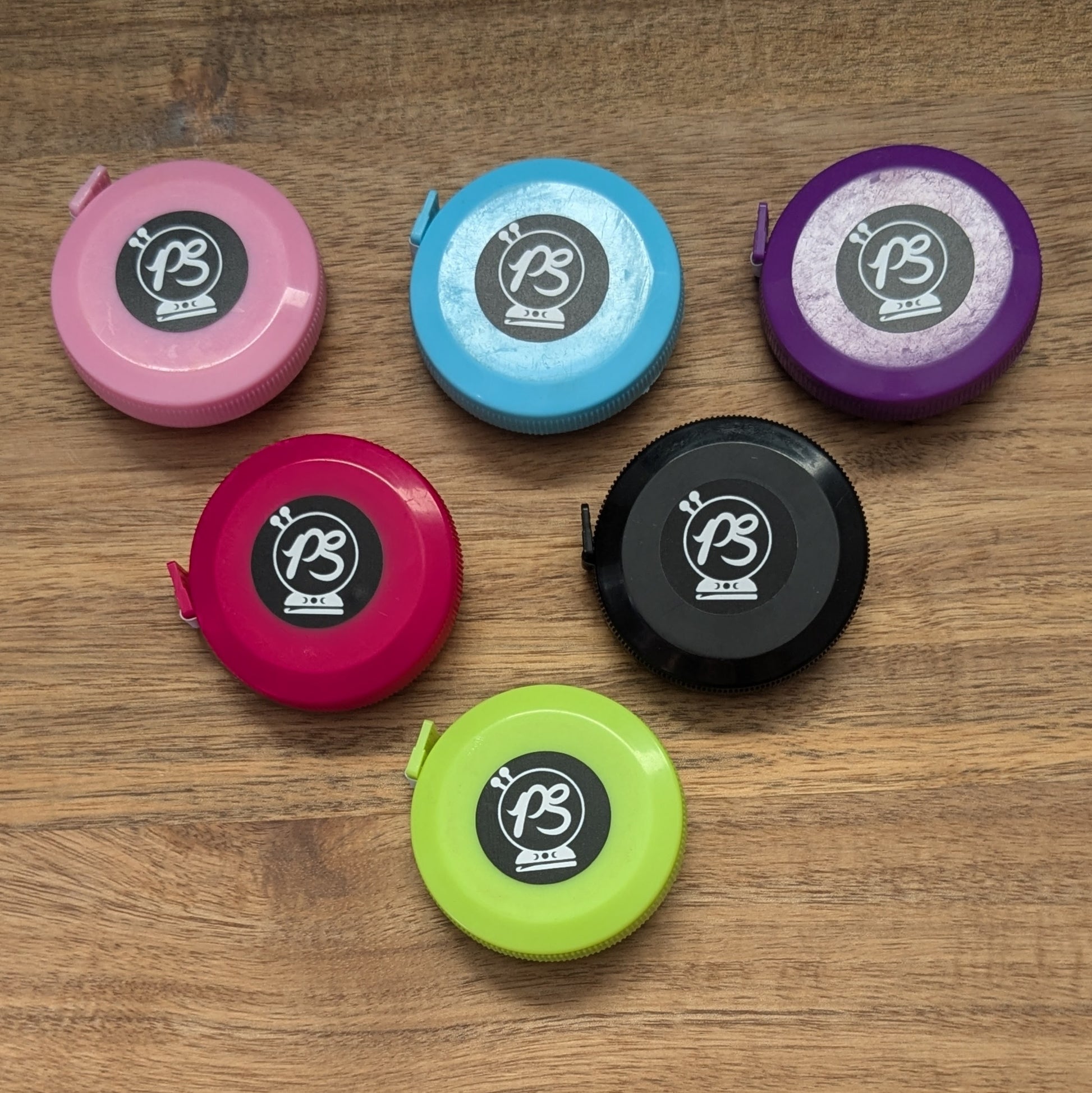 The Practical Stitchcraft measuring tape is encased in colorful plastic and has the Practical Stirchcraft logo in black and white. The retractable measuring tape is 60" (152 cm) long.