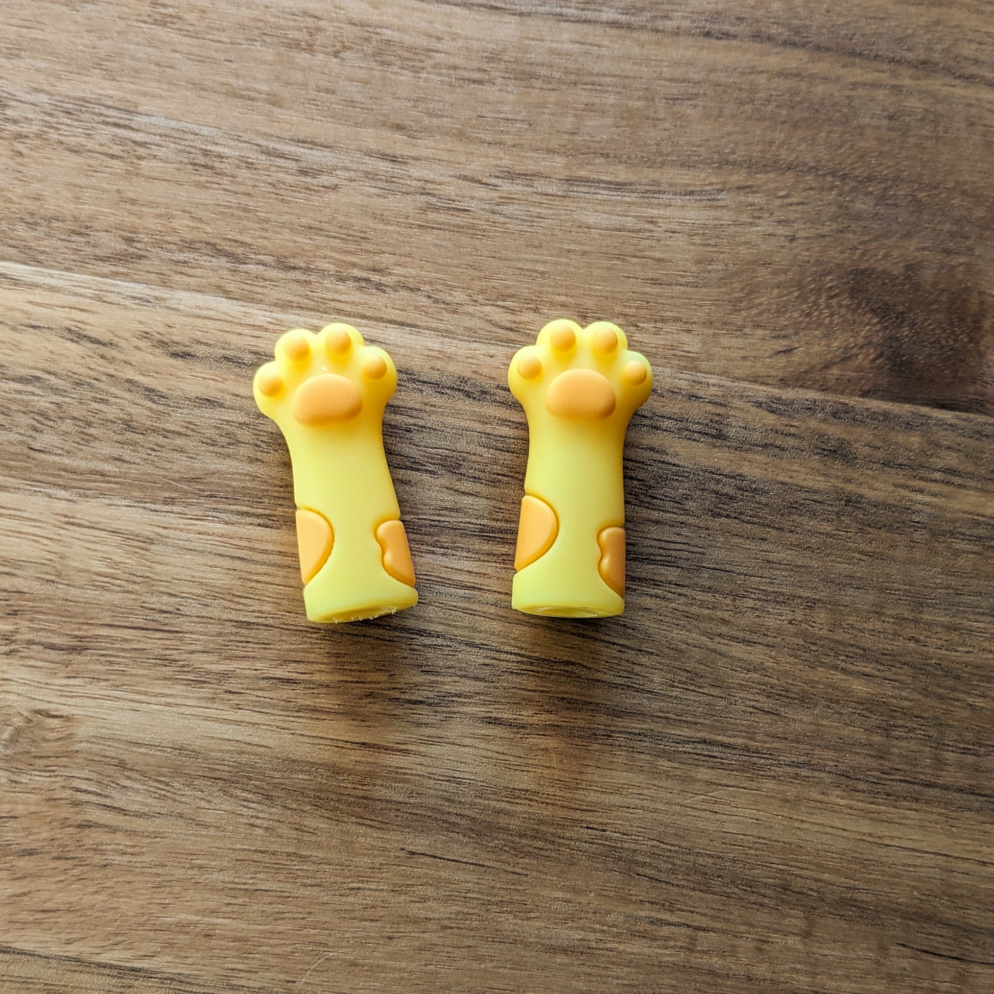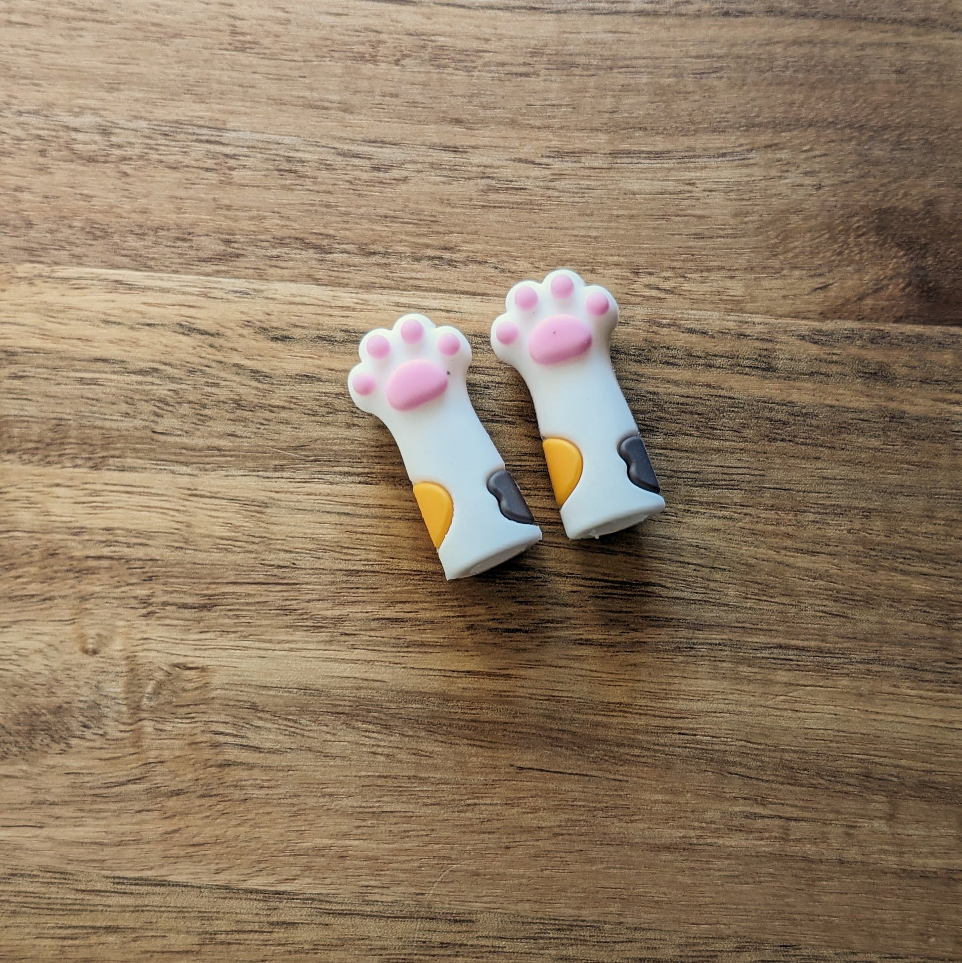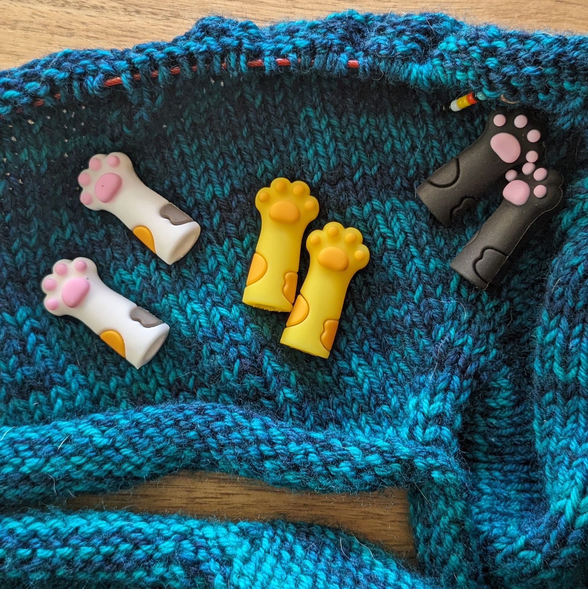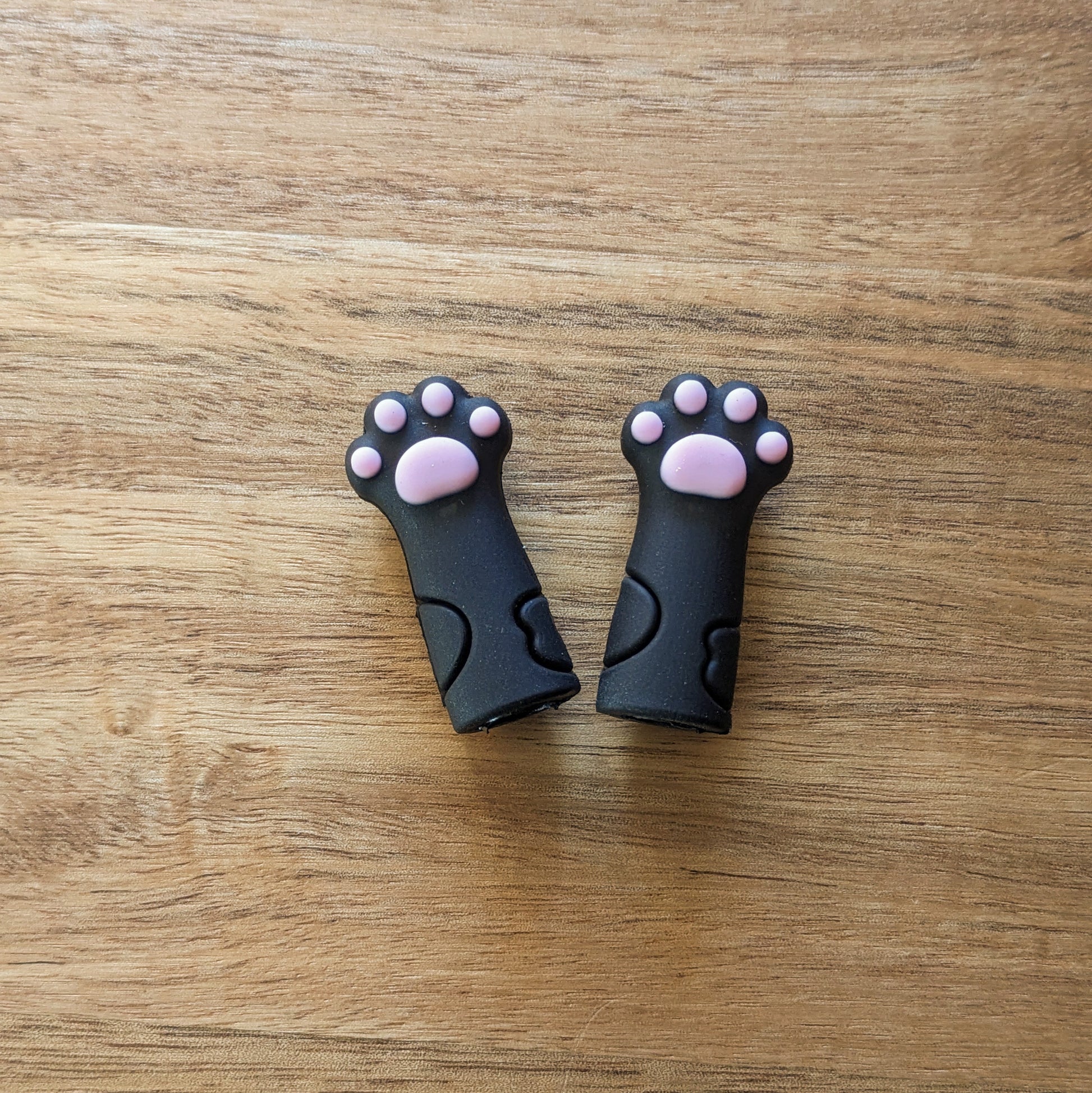 Sweet little kitten paw needle stoppers can be used on knitting needle US size 11 to 15 (8 to 10 mm) needles or two needles of a smaller size can be used in one stopper at once. I've also found that they are great for keeping your sock needles together and stopping your project from slipping out.