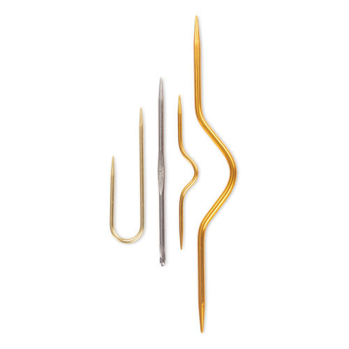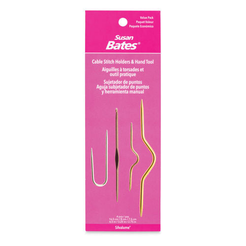 Value pack with 3 assorted sized and shaped cable stitch holders and one hooked Handi-Tool