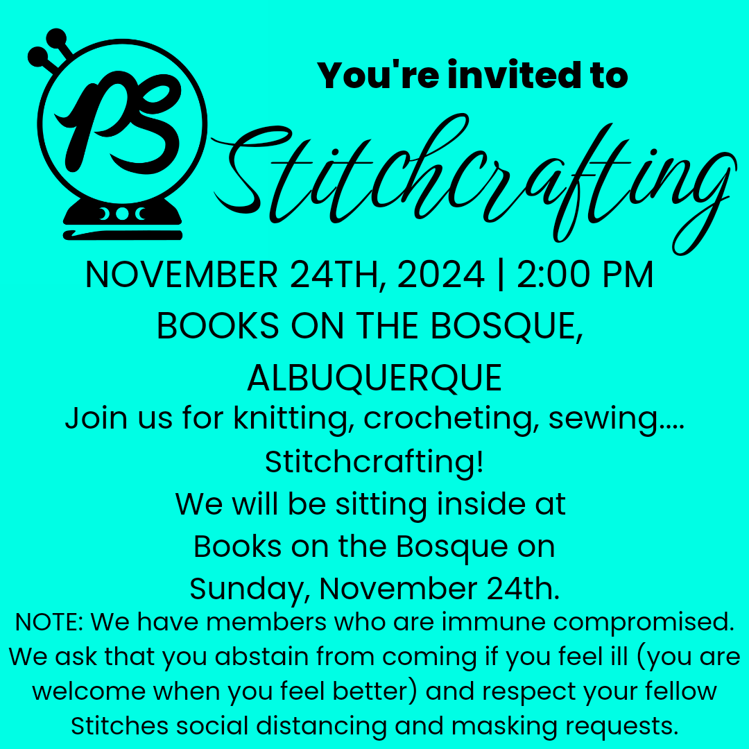 NOTE: We have members who are immune compromised. We ask that you abstain from coming if you feel ill (you are welcome when you feel better) and respect your fellow Stitches social distancing and masking requests.